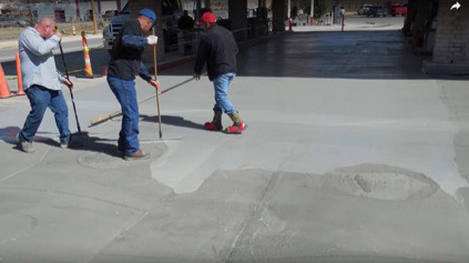 3. The polymer cement overlay was mixed and applied in lifts to fill in any low spots and finished with a concrete finishing broom to provide the proper friction for rubber tire traffic.