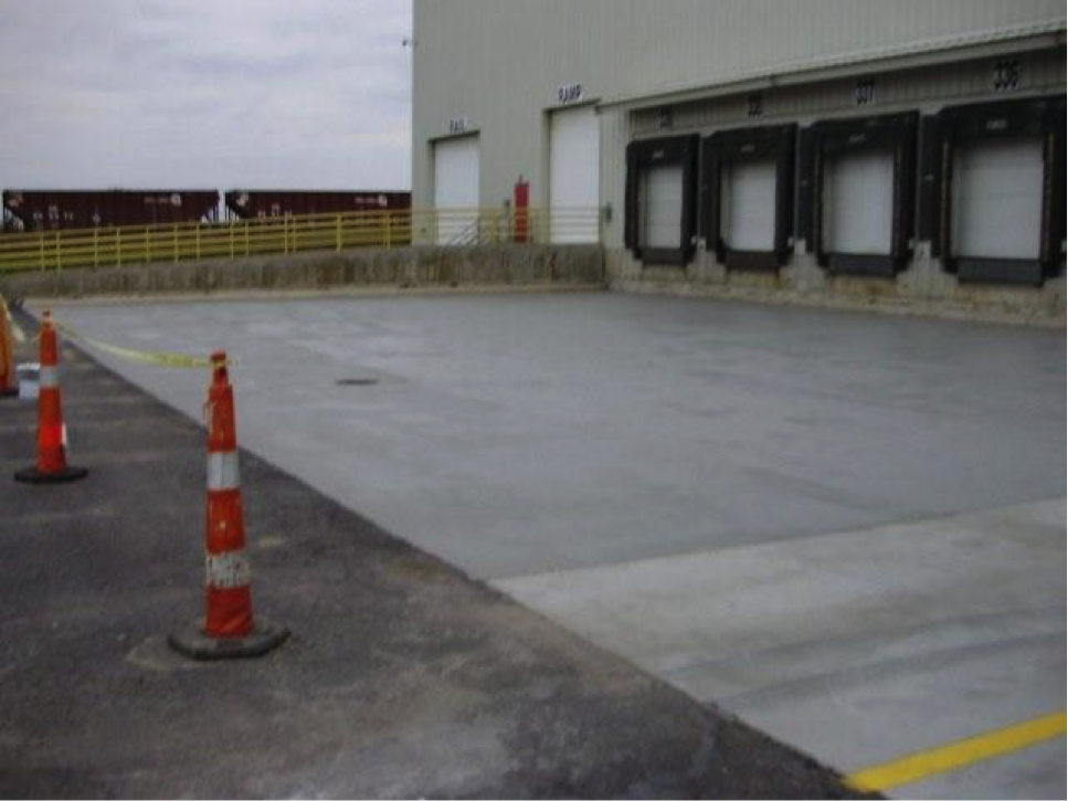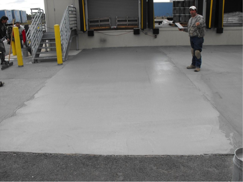 The concrete pad in front of the loading docks at a major distribution center was exhibiting signs of wear and spalling